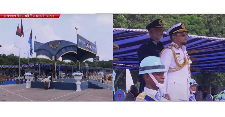 যশোরে অবস্থিত বাংলাদেশ বিমান বাহিনী একাডেমিতে আজ বুধবার (২১ মে) আয়োজিত হয়েছে গ্রীষ্মকালীন রাষ্ট্রপতি কুচকাওয়াজ। অনুষ্ঠানে প্রধান অতিথি হিসেবে উপস্থিত ছিলেন বাংলাদেশ নৌবাহিনীর প্রধান এডমিরাল মোহাম্মদ নাজমুল হাসান।