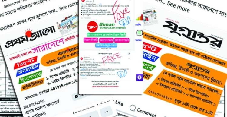 সামাজিক যোগাযোগমাধ্যম ফেসবুকে ভুয়া চাকরির বিজ্ঞাপনের মাধ্যমে প্রতারণার মাত্রা আশঙ্কাজনকভাবে বৃদ্ধি পেয়েছে। বিভিন্ন নামসর্বস্ব বা সনামধন্য প্রতিষ্ঠানের নামে চাকরির নিয়োগ বিজ্ঞাপন দিয়ে সাধারণ জনগণ, বিশেষ করে শিক্ষিত বেকারদের ফাঁদে ফেলে লাখ লাখ টাকা হাতিয়ে নিচ্ছে সংঘবদ্ধ প্রতারক চক্র।