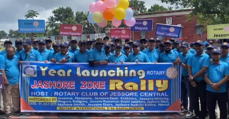 ২০২৫-২৬ রোটারি বর্ষ উদযাপন উপলক্ষে মঙ্গলবার (১ জুলাই) যশোরে অনুষ্ঠিত হয়েছে বর্ণাঢ্য শোভাযাত্রা, সাংবাদিক সম্মেলন এবং মানবিক সহায়তা কার্যক্রম। “ভোলার জন্য ঐক্যবদ্ধ হও”—এই প্রতিপাদ্যকে সামনে রেখে রোটারি ক্লাবসমূহের সমন্বয়ে গঠিত রোটারি যশোর জোন এসব কর্মসূচির আয়োজন করে।