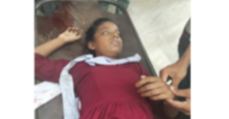 আহত ফারিয়া লেবুতলা কোদালিয়া গ্রামের মাহবুব রহমানের কন্যা এবং খাজুরা মণীন্দ্রনাথ মাধ্যমিক বিদ্যালয়ের ষষ্ঠ শ্রেণির শিক্ষার্থী। প্রত্যক্ষদর্শীরা জানান, প্রতিদিনের মতো সে স্কুলে যাওয়ার উদ্দেশ্যে বাসে ওঠার চেষ্টা করছিল। এ সময় পা পিছলে বাসের নিচে পড়ে গিয়ে গুরুতর আঘাত পায়।