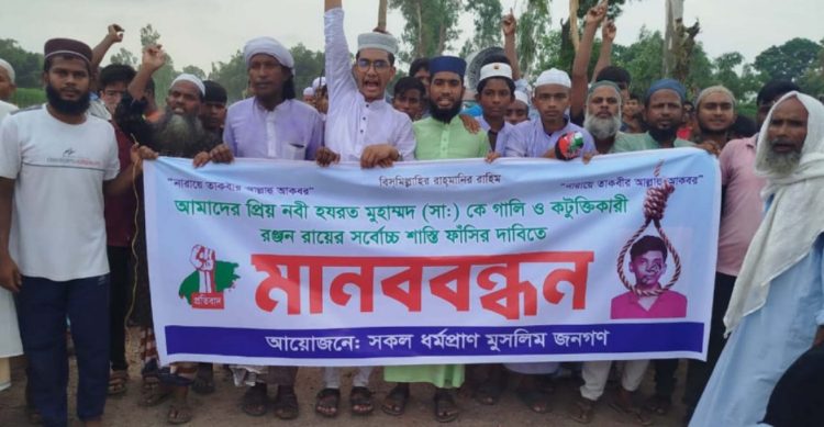 স্থানীয় সূত্রে জানা গেছে, খিলালগঞ্জ এলাকার বাসিন্দা রঞ্জন রায় সম্প্রতি সামাজিক যোগাযোগমাধ্যমে একটি পোস্টে মহানবী হযরত মুহাম্মদ (সা.) সম্পর্কে আপত্তিকর মন্তব্য করেন বলে অভিযোগ ওঠে। বিষয়টি এলাকায় জানাজানি হলে মুসলিম জনতার মধ্যে উত্তেজনা ছড়িয়ে পড়ে। পুলিশ দ্রুত পদক্ষেপ নিয়ে অভিযুক্ত যুবককে গ্রেপ্তার করে।