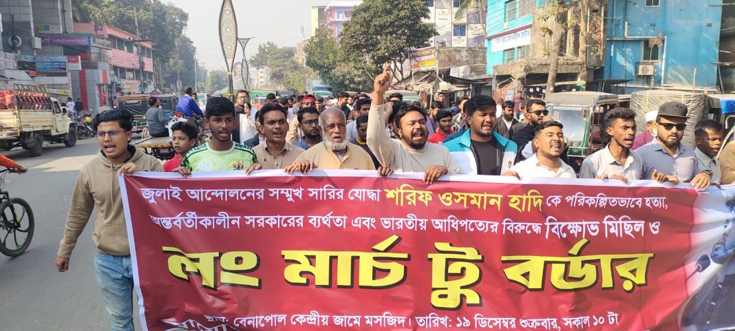 বেনাপোলে ছাত্র-জনতার ‘লংমার্চ টু বর্ডার’: হাদি হত্যাকারীদের ফিরিয়ে এনে বিচারের দাবি