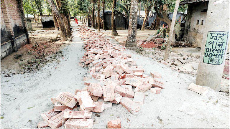 যশোরের শার্শা উপজেলায় চাঁদা দিতে অস্বীকৃতি জানানোয় নবনির্মিত একটি ইট বিছানো সড়কের ইট তুলে ফেলার অভিযোগ উঠেছে স্থানীয় কথিত ‘ডাবলু বাহিনী’র বিরুদ্ধে। উপজেলার উলাশী ইউনিয়নের জিরেনগাছা গ্রামে ঘটে যাওয়া এ ঘটনায় এলাকায় চরম আতঙ্ক বিরাজ করছে।