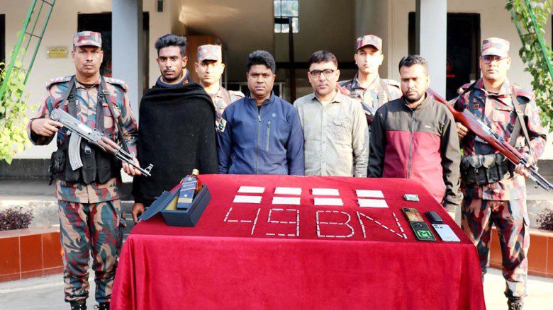 যশোর ব্যাটালিয়ন (৪৯ বিজিবি) সূত্রে জানা গেছে, গোপন সংবাদের ভিত্তিতে ভোরে দাইতলা বাসস্ট্যান্ড এলাকায় অবস্থান নেয় বিজিবির একটি বিশেষ টহলদল। ভোর ৫টার দিকে সন্দেহভাজন চার ব্যক্তি ওই এলাকা দিয়ে যাওয়ার সময় তাদের থামিয়ে তল্লাশি করা হয়। তল্লাশিকালে তাদের সাথে থাকা ব্যাগ থেকে বিশেষ কায়দায় লুকিয়ে রাখা ১০ কেজি ৫০০ গ্রাম রুপা এবং ১ বোতল বিদেশি মদ উদ্ধার করা হয়।