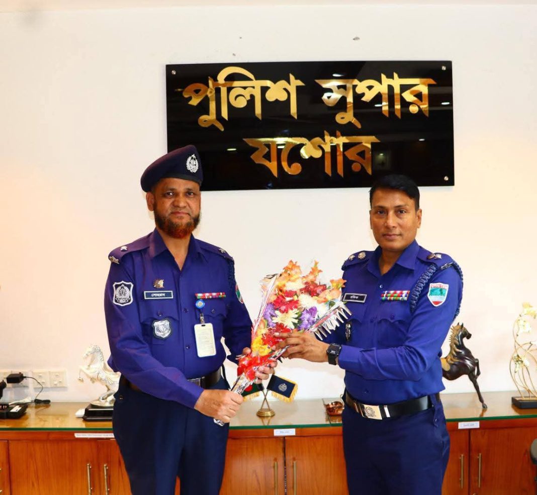 পদোন্নতিপ্রাপ্ত দুই পুলিশ কর্মকর্তাকে র্যাংক ব্যাজ পরিয়ে দিলেন যশোরের পুলিশ সুপার