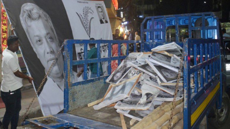 সরেজমিনে দেখা যায়, শহরের গুরুত্বপূর্ণ পয়েন্টগুলো থেকে কর্মীরা পোস্টার ও ব্যানার খুলে পিকআপ ভ্যানে করে সরিয়ে নিচ্ছেন। এ বিষয়ে জেলা স্বেচ্ছাসেবক দলের আহ্বায়ক মোস্তফা আমির ফয়সাল সংবাদ মাধ্যমকে বলেন: