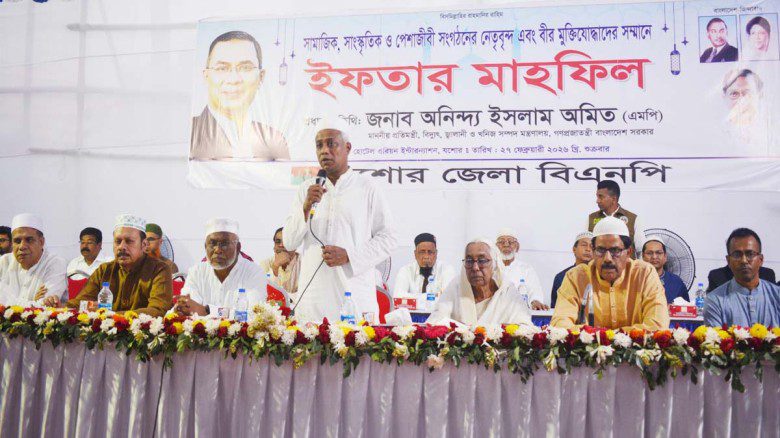 শুক্রবার (২৭ ফেব্রুয়ারি) যশোরের হোটেল ওরিয়ন ইন্টারন্যাশনাল চত্বরে জেলা বিএনপি আয়োজিত এক আলোচনা সভা ও ইফতার মাহফিলে প্রধান অতিথির বক্তব্যে তিনি এসব কথা বলেন। সামাজিক, সাংস্কৃতিক, পেশাজীবী সংগঠন এবং বীর মুক্তিযোদ্ধাদের সম্মানে এই অনুষ্ঠানের আয়োজন করা হয়।