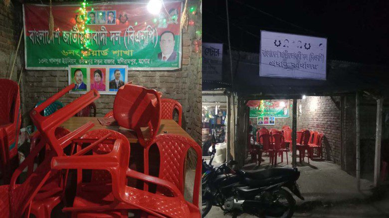 মণিরামপুরে বিএনপি কার্যালয় ভাঙচুর ও নেতাদের ছবি অবমাননা, থানায় অভিযোগ