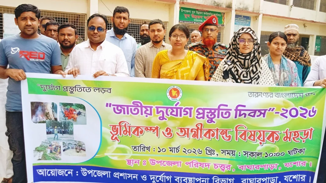 যশোরের বাঘারপাড়ায় যথাযোগ্য মর্যাদায় ‘জাতীয় দুর্যোগ প্রস্তুতি দিবস-২০২৬’ পালিত হয়েছে। দিবসটি উপলক্ষে আজ মঙ্গলবার (১০ মার্চ) সকালে উপজেলা প্রশাসন ও দুর্যোগ ব্যবস্থাপনা দপ্তরের আয়োজনে বিভিন্ন সচেতনতামূলক কর্মসূচি পালন করা হয়।